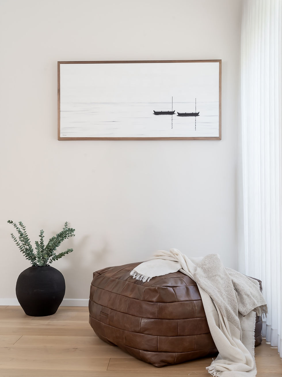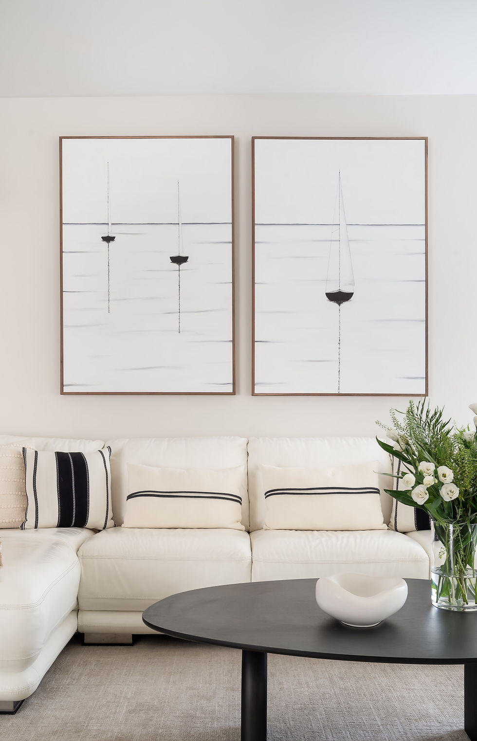 קולקציית האוקיינוס שמתארת את האהבה שלי לסגנון הנמצא אי שם בין היפני לנורדי. ציורים מינימליסטים בגווני לבן, אפור ושחור. אני מציירת את כל הציורים על גבי קנבס מתוח על קונסטרוקציית עץ.